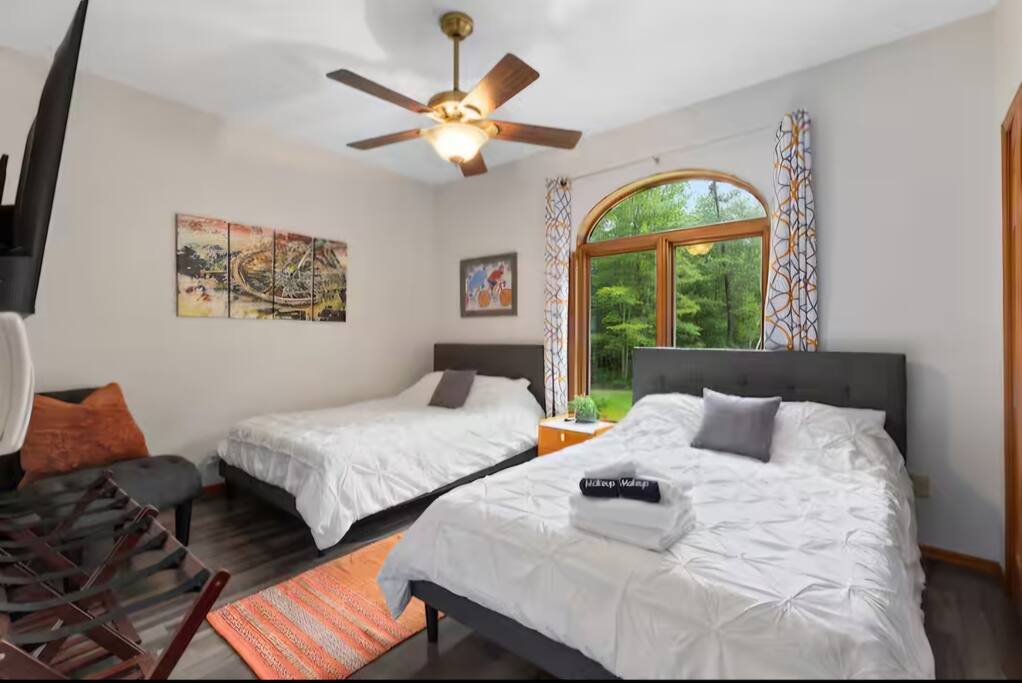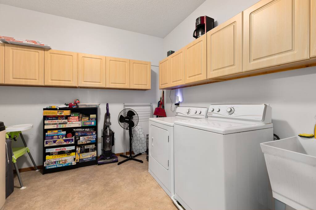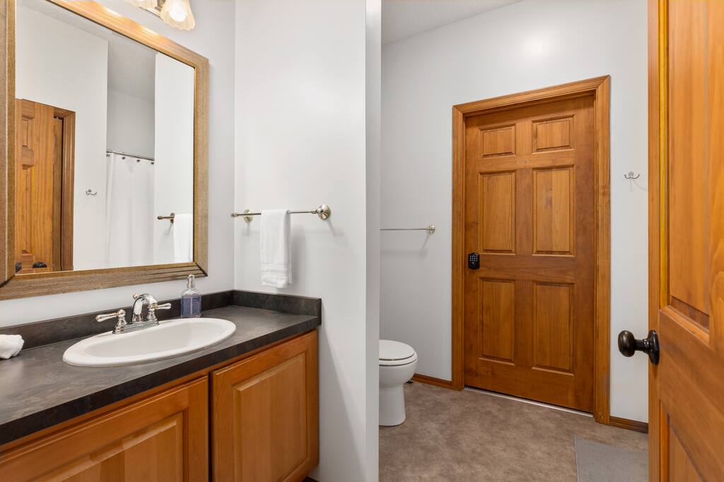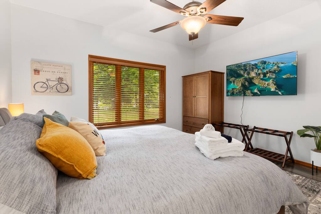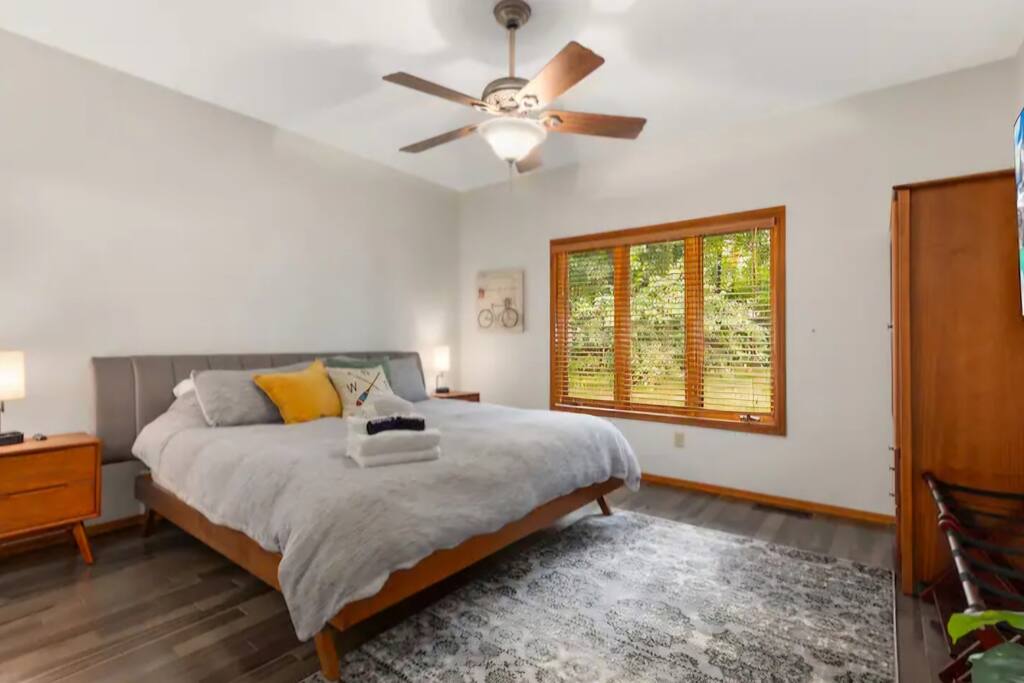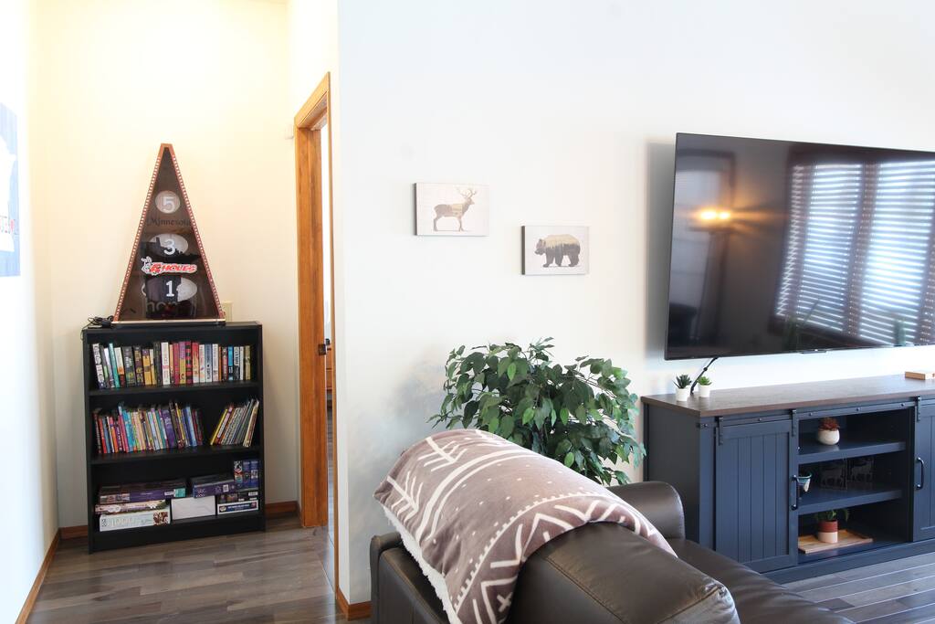 With 200' of shoreline on 242-acre Fool Lake, enjoy a modern 3BR 2BA home and endless activities nearby, including golf, bike trails (paved and mountain bike), kayaking, snowmobiling, shopping, dining, and fishing. * Optional pontoon (fish/cruising combo) rental available! * Separate game room included for guests ! * Great for your craft weekend! Cuyuna Moon offers one-level living with three spacious bedrooms and two updated bathrooms. Bedroom one boasts a king bed suite with a larger smart TV and an en suite bathroom, while bedroom two has two full-size beds, and bedroom three features twin over full bunk bed. The living room provided additional sleeping options, with pull-out queen and pull-out twin beds. Inside, guests will find a fully stocked kitchen, seating for 8 around the dining table, a modern interior with a large smart TV, and a connected 3-season porch with additional seating and a game table. Outside, guests can indulge in peace and tranquility in a very quiet setting. Enjoy free use of yard games such as cornhole, ladder ball, bocce, horseshoes, and more. For cozy nights around the bonfire, the fire pit comes with a large supply of firewood and toasting sticks. On the lake, guests will discover a serene setting that showcases nature and the best of the north woods. The property provides a dock, a floating swim dock, four kayaks and two paddleboards. Other amenities include free high-speed Wi-Fi, smart TV's, a complimentary washer/dryer, a garage, life jackets, snowshoes, bike stand and tools, Pack 'N Play, high chair, games, puzzles, books, and more! You will have full access to the entire house, the connected garage, the laundry room, and the lake. Please practice good water safety while enjoying Fool Lake and our property, including the use of life jackets for water sports and activities. We provide life jackets, kayaks, SUPs, swim raft, and a dock for your convenience. In the winter, guests can enjoy snowmobiling, snowshoeing, fat tire biking and ice fishing! A bar/restaurant is a short, 5-minute drive away and Crosby is 10 minutes away where you can enjoy great dining, shopping , biking, golf, pickleball, and so much more! Within a 15-20 minute drive, guests can explore Crosslake restaurants, shopping, lakes, golf, and much more! Come and experience a rejuvenating retreat at Cuyuna Moon, where you can embrace the tranquil surroundings and make lasting memories with friends and family!